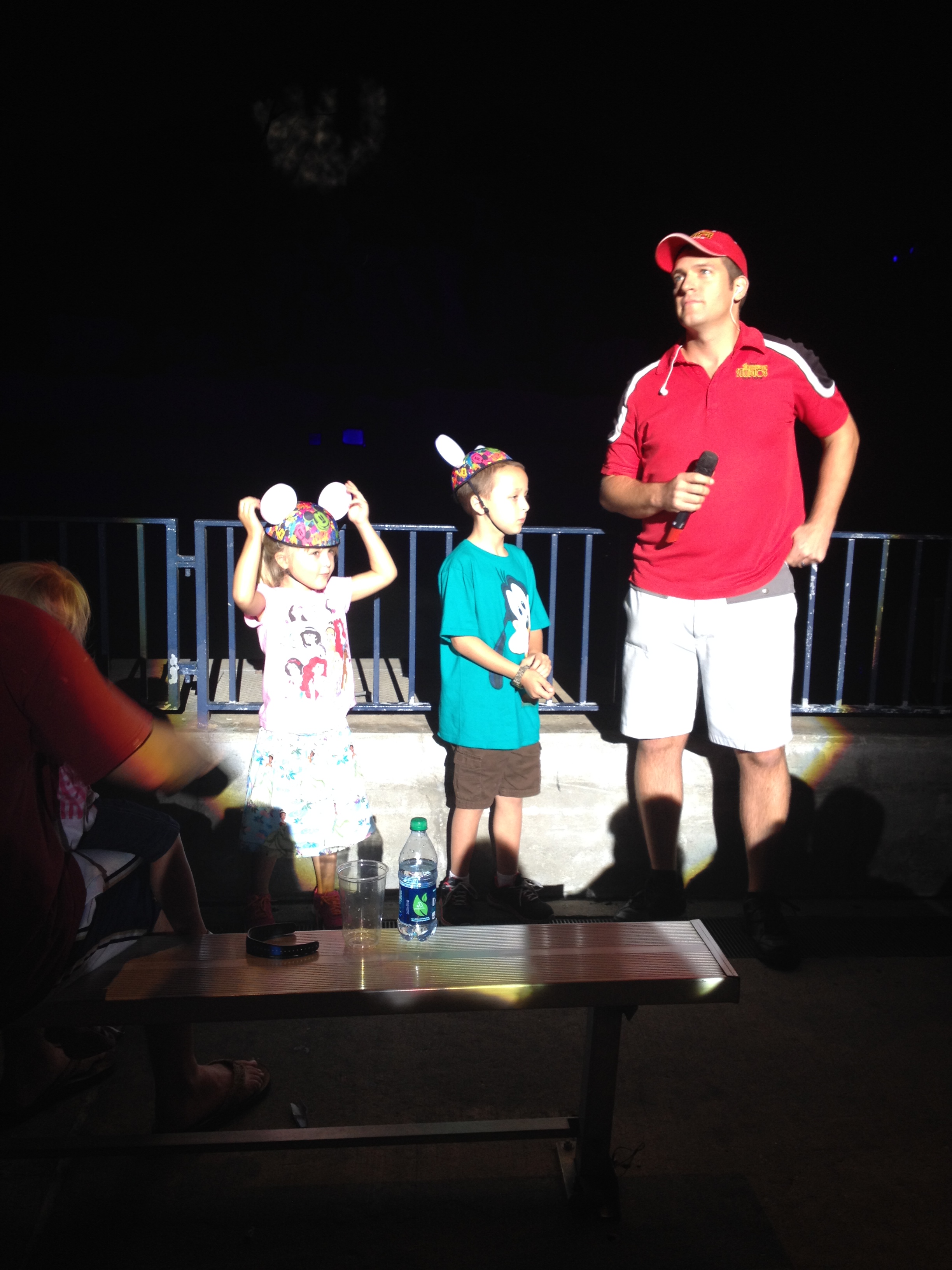 We were in a show, only because they had the $25 light up ears they were hawking, and a certain Disney junkie traveling companion for the day DID NOT tell us if you sit in the front rows during Fantasmic, you get REALLY REALLY wet and spend the whole show wiping mist out of your eyes.